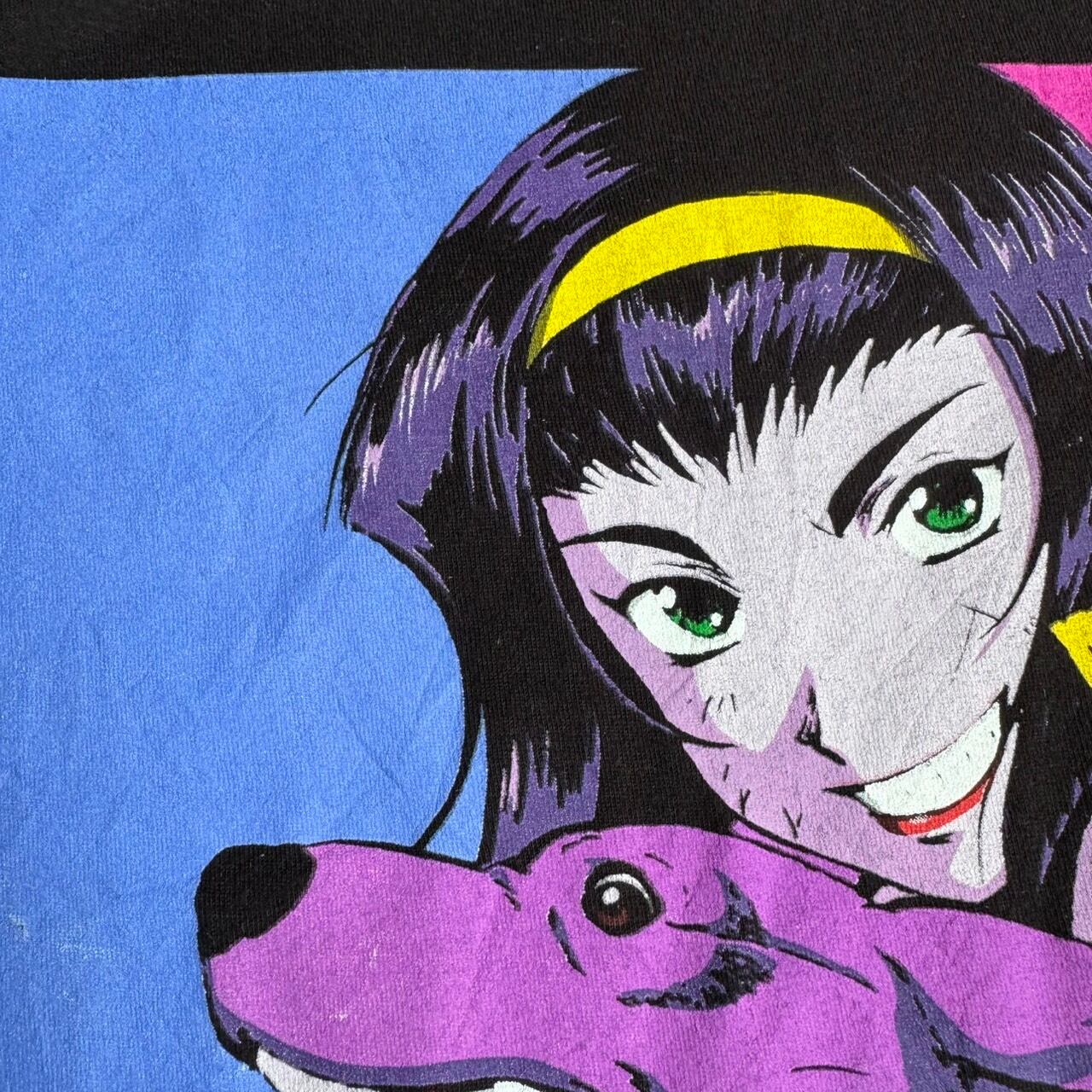 90年代の名作SFアニメ『カウボーイビバップ』より、フェイ・ヴァレンタインと愛犬アインを大胆にプリント。